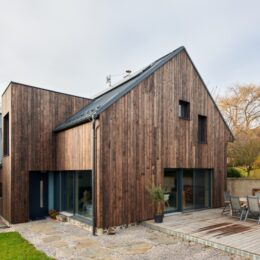 Rodinný dům byl navržen s důrazem na efektivní provoz a udržitelnost. Elektrické podlahové topení doplňuje krbová vložka, ohřev vody zajišťuje tepelné čerpadlo. Energetickou bilanci podporuje střešní fotovoltaika a akumulační nádrž na dešťovou vodu. Konstrukce stavby obsahuje desítky kubíků dřeva, které vážou velké množství CO₂. Většina materiálů pochází z českých zdrojů, […]