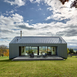 Rodinný dům autoři do svahu pod lesem zasadili tak, aby snížili jeho vizuální profil a zároveň přirozeně ochránili spodní podlaží. Vzniklo tak útočiště, které poskytuje soukromí a zároveň umožňuje bezprostřední kontakt s přírodou. Hlavní obytná místnost nad terénem má dvě stěny s velkoformátovým prosklením proti sobě, takže je téměř průhledná. […]