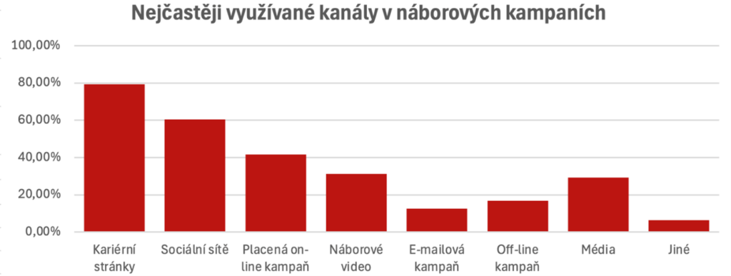 Náborovou kampaň v posledním roce realizovalo 36 % organizací. Nejčastěji přitom zapojují kariérní stránky (79 %), sociální sítě (60 %) a placenou on-line reklamu (42 %). HR marketing však zůstává pro většinu organizací spíše okrajovou aktivitou – více než polovina z nich (55 %) mu věnuje méně než 10 % své kapacity a pouze 29 % má pro budování značky zaměstnavatele (employer branding) dedikovanou roli.
