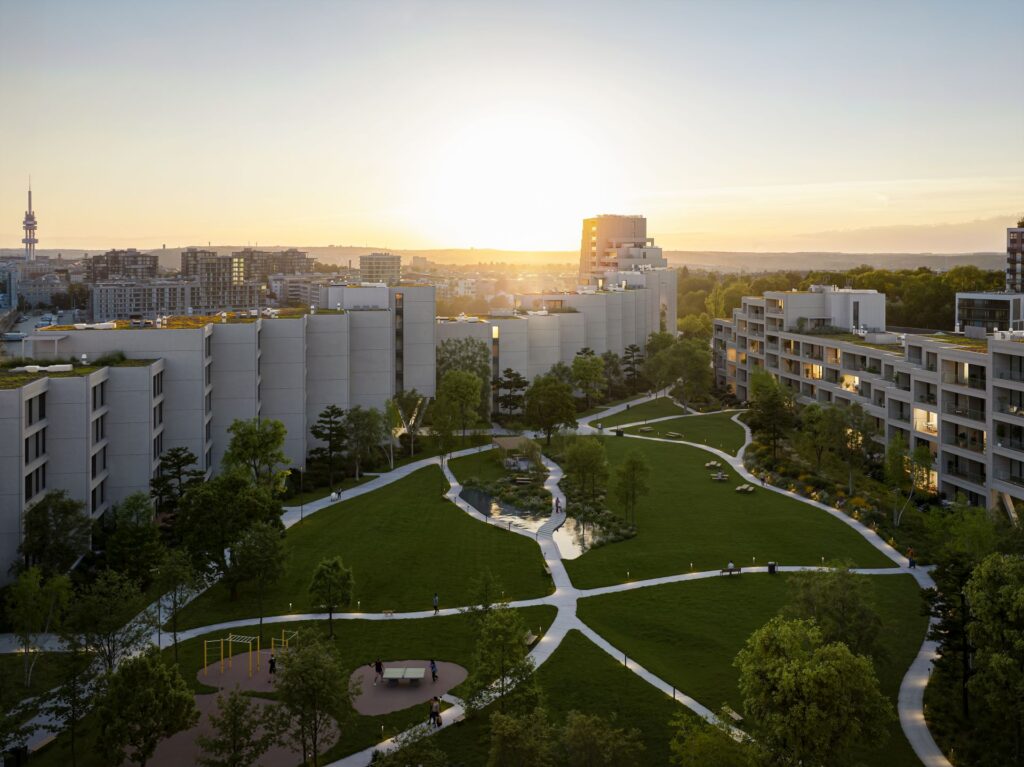 „Urbanistický koncept pracuje s blokovou strukturou, která vytváří jasně definovaný veřejný prostor a zároveň otevírá velkorysý vnitroblok s parkem. Cílem bylo navrhnout prostředí, které kombinuje městskou hustotu s kvalitou života, jehož hlavním centrem je zelená parková plocha,“ dodává Radek Lampa, zakládající partner ateliéru RA15.