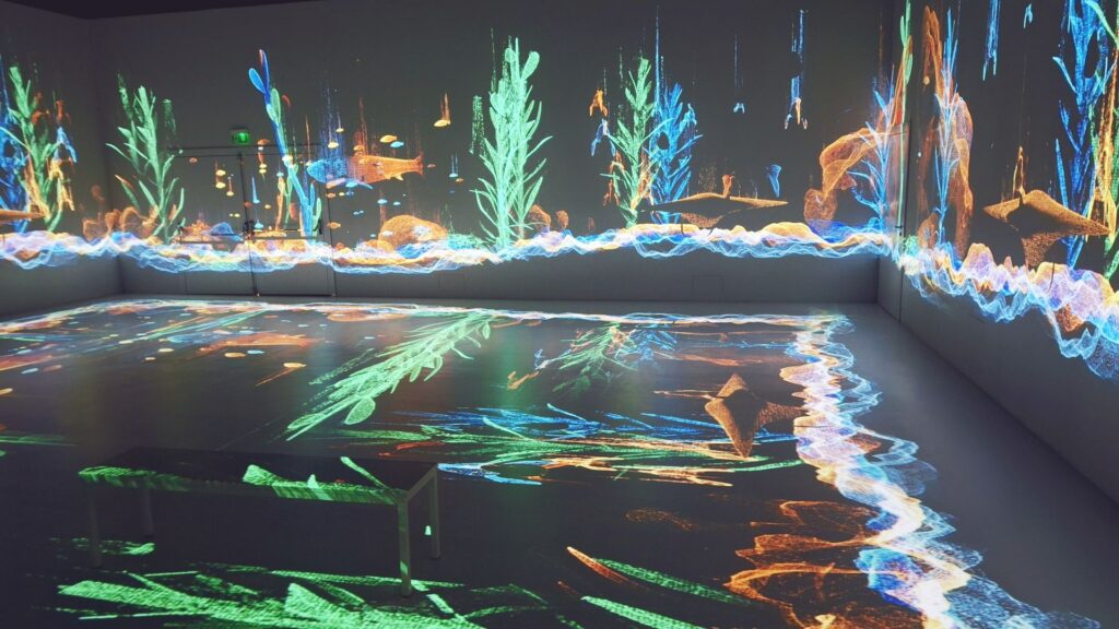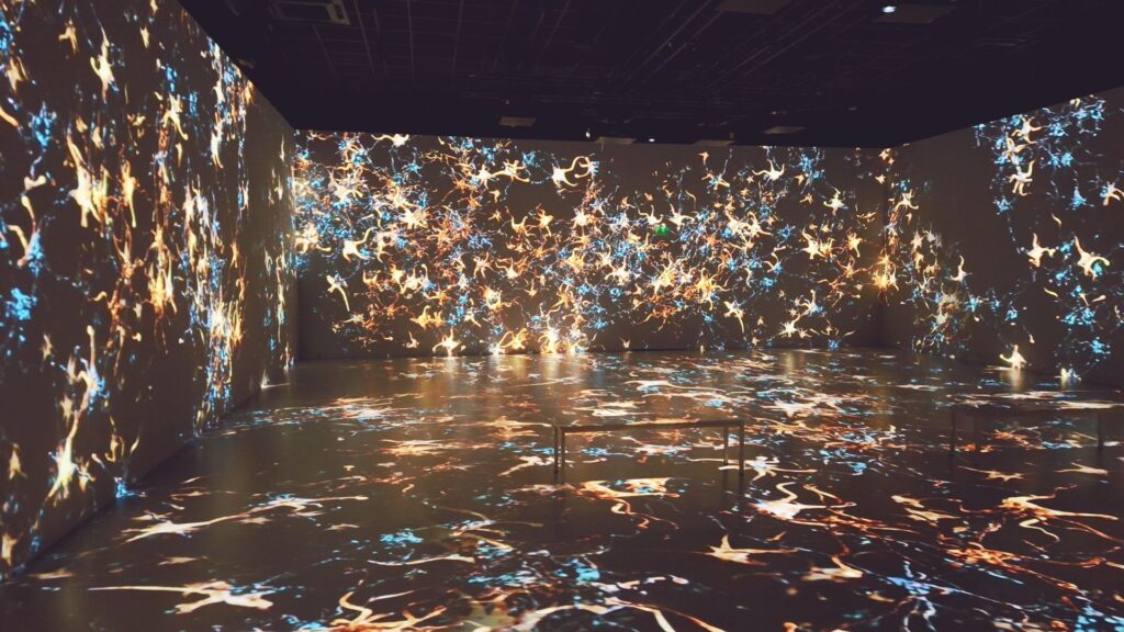 Hlavním lákadlem první výstavy je Immersive Space – největší projekční sál svého druhu v Česku, kde se obraz promítá na všechny stěny i podlahu. Uvede instalaci Everything istanbulského studia Nohlab, která propojuje vědecká data, filozofii a digitální vizualizace do obklopujícího audiovizuálního zážitku.
