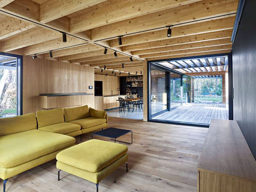 Celý dům využívá moderní technologie, jako například inteligentní ovládání a regulace vytápění a osvětlení, které je v interiéru řešeno černými LED reflektory osazenými na lištách v pohledovém skeletu, v kombinaci s LED pásky sloužícími převážně pro nepřímé osvětlení. Architekti pro dům v Kersku zvolili systém inteligentní elektroinstalace ABB-free@home, který doplnili černými vypínači ABB Future Linear. A černé doplňky efektně kontrastují se všudypřítomným dřevem napříč celým interiérem. Najdeme je například také v podobě okenních rámů, některých stěn, dveří, zárubní, klempířských segmentů, spojovacích materiálů či dveřního kování NOVA, které architekti pro tuto novostavbu využili.