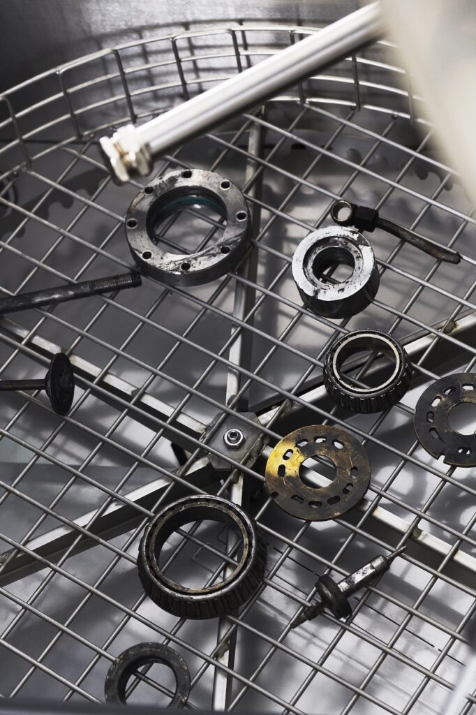 K čištění dílů se často používají speciální mycí stoly nebo vysokotlaké čističe dílů, které však všechny vyžadují aktivní zapojení zaměstnance. Nyní přichází novinka od poskytovatele služeb Mewa: čistič dílů Eco-Matic. Čistí náhradní díly automaticky, zatímco zaměstnanci se mohou věnovat jiným úkolům. Čištění provádí 21 trysek, které čistí díly shora, zdola a ze stran tlakem až 6 barů při teplotě 41 stupňů. Díly jsou umístěny v rotačním koši, který se během procesu čištění neustále otáčí kolem své osy.