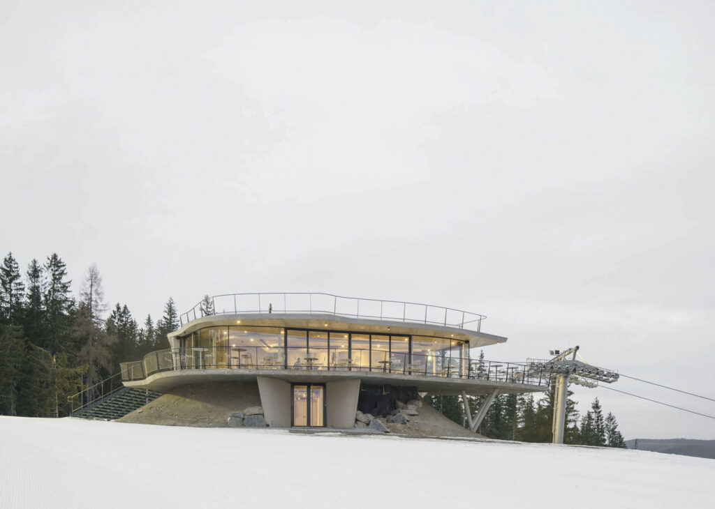 Kontrolní kabina pro provoz lanovky navazuje na venkovní schodiště a je organicky tvarována tak, aby pracovníkům poskytovala maximální výhled. Panoramatické okno je rovněž tvořeno zaoblenými izolačními skly a 3D tištěná struktura je v případě kabiny tepelně izolační. V kabině je integrováno kontrolní zařízení a elektrorozvaděče.