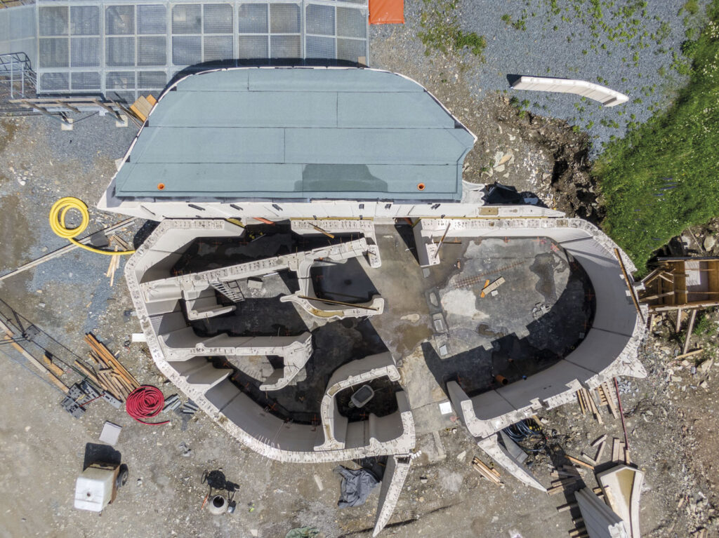 Projekt reagoval na mimořádně náročné stavební podmínky, komplikovaný terén a nutnost zachovat provoz lanovky po celou dobu výstavby. Tisk konstrukčních prvků probíhal v hale, zatímco na místě probíhala rychlá montáž. Kontrolní kabina byla na základovou desku složena během jednoho týdne, a již tři týdny od položení základů byla lanovka opět uvedena do provozu.