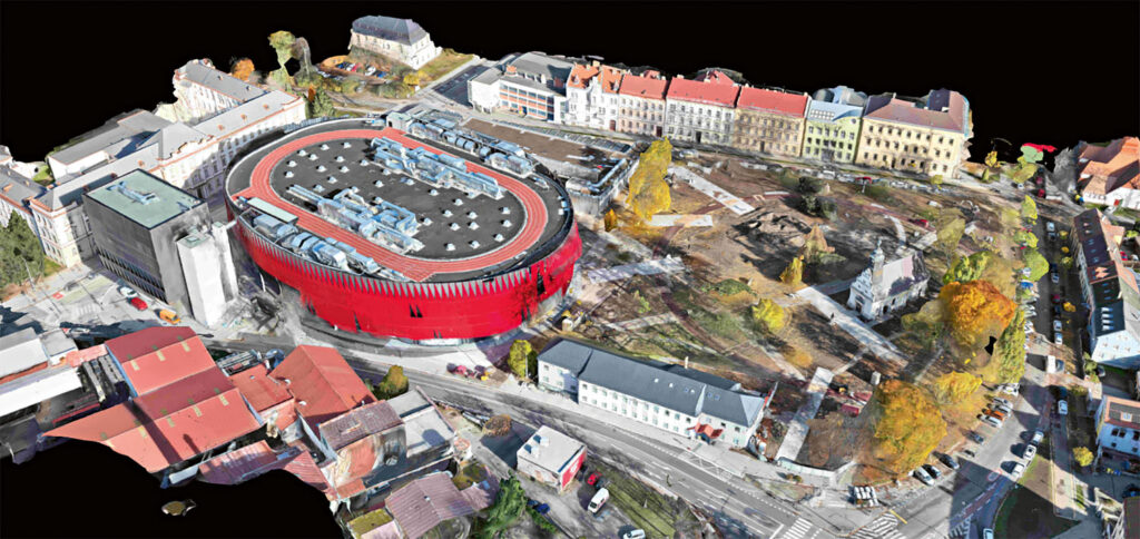 Slouží pro detailní skenování vnitřních i vnějších prostor s výstupem v podobě barevného mračna bodů a 360° fotografií. Využití: pasport současného stavu, podklady pro dodavatele dílenské dokumentace (prostorové zámečnické prvky, složité fasády, vestavný nábytek). - 360° kamery