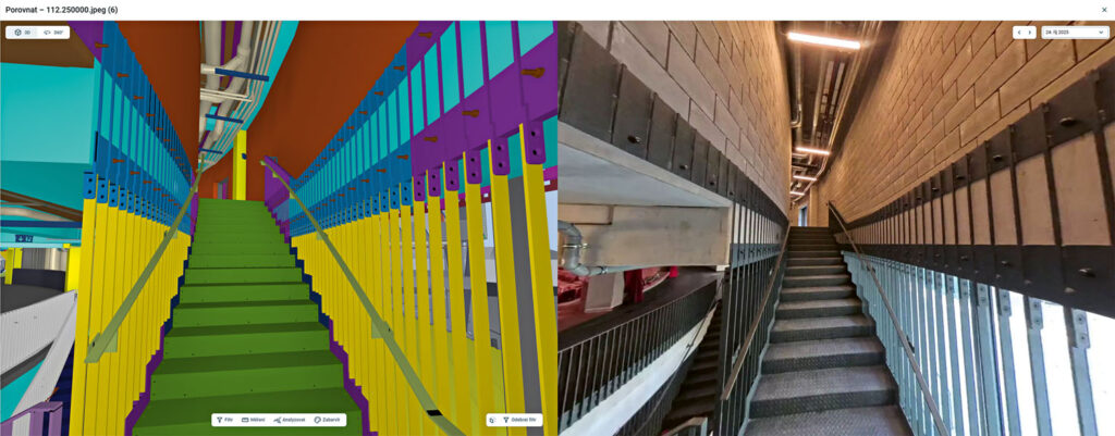 Zásadní rozdíl v přístupu společnosti GEMO spočívá v tom, že BIM není chápán pouze jako trojrozměrný model pro projekci, ale jako informační model stavby, který se průběžně aktualizuje během celé výstavby. V praxi to znamená systematické pořizování 360° fotodokumentace, laserové skenování skutečného stavu, dronové mapování staveniště a jejich přímé napojení na společné datové prostředí a dílčí digitální modely stavby. Výsledkem je, že projektanti i investoři mají k dispozici aktuální a ověřená data, na jejichž základě lze rychle reagovat na změny vznikající při realizaci.