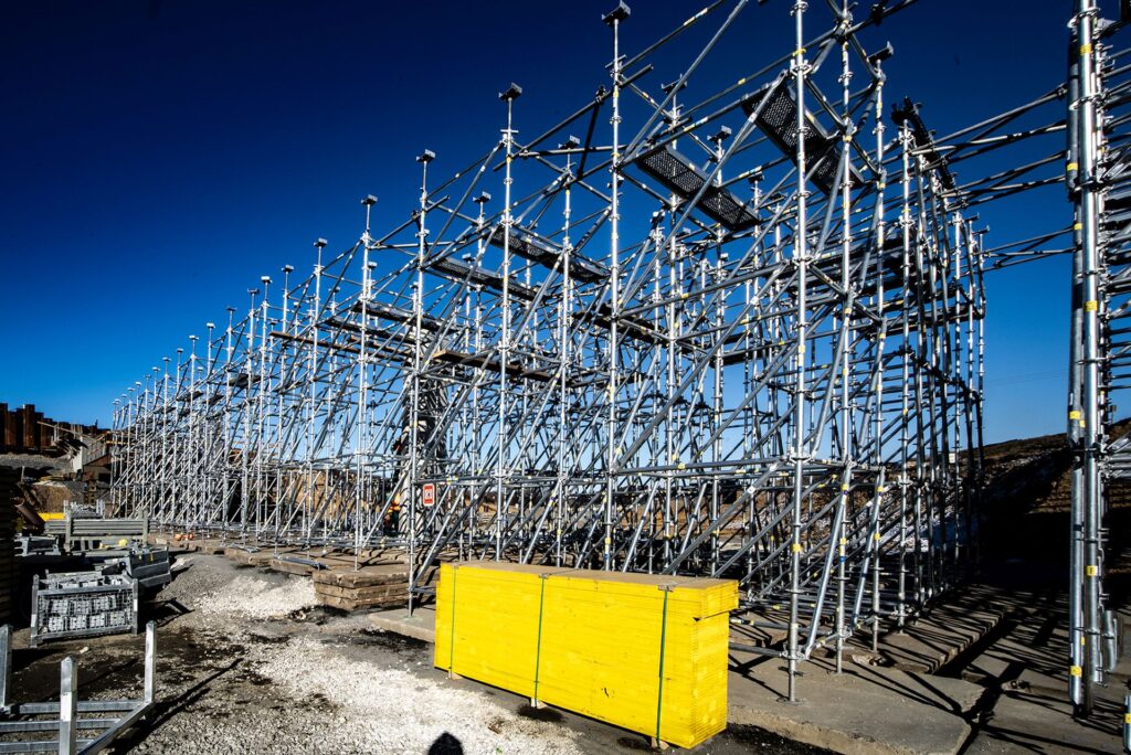 Bezpečnost práce je dnes klíčovým parametrem každé stavby. Systémové propojení bednění a lešení umožňuje integrovat ochranné prvky, například zábradlí, pracovní plošiny nebo výstupové věže, přímo do konstrukce už ve fázi montáže. To minimalizuje potřebu dodatečných zásahů a snižuje riziko chyb.