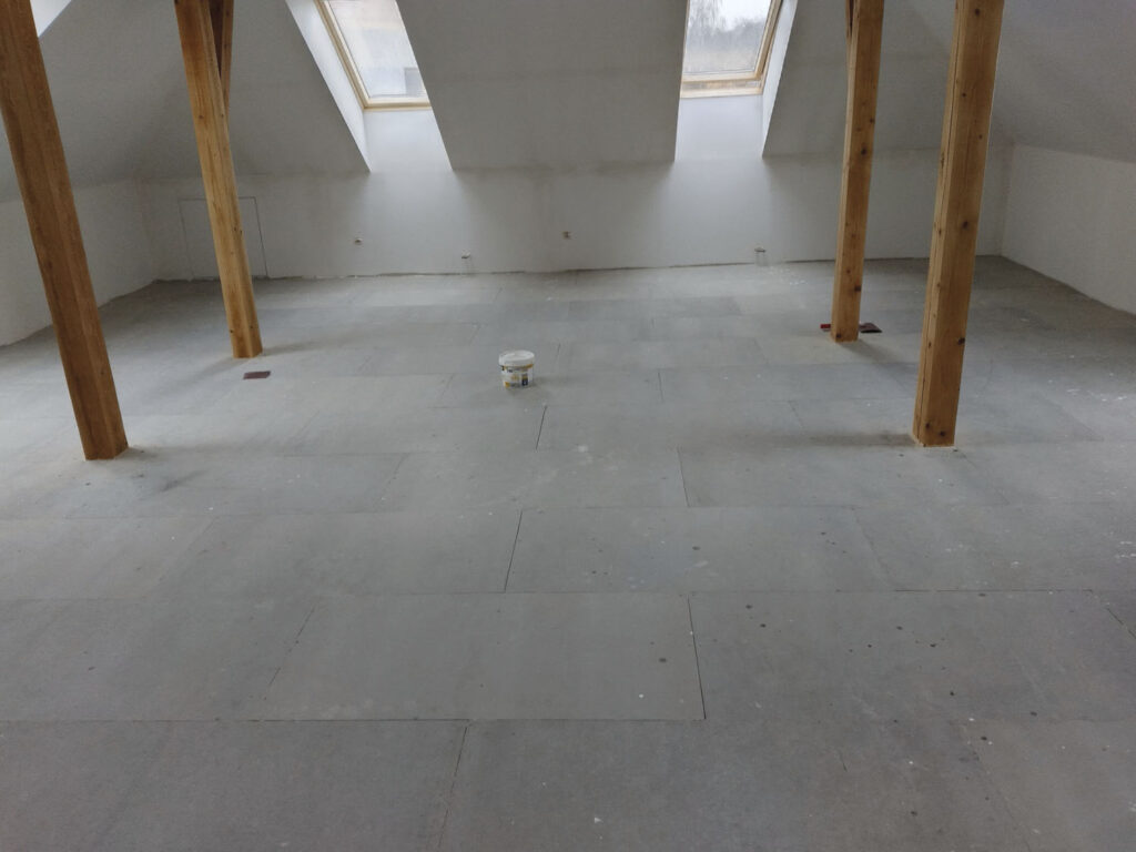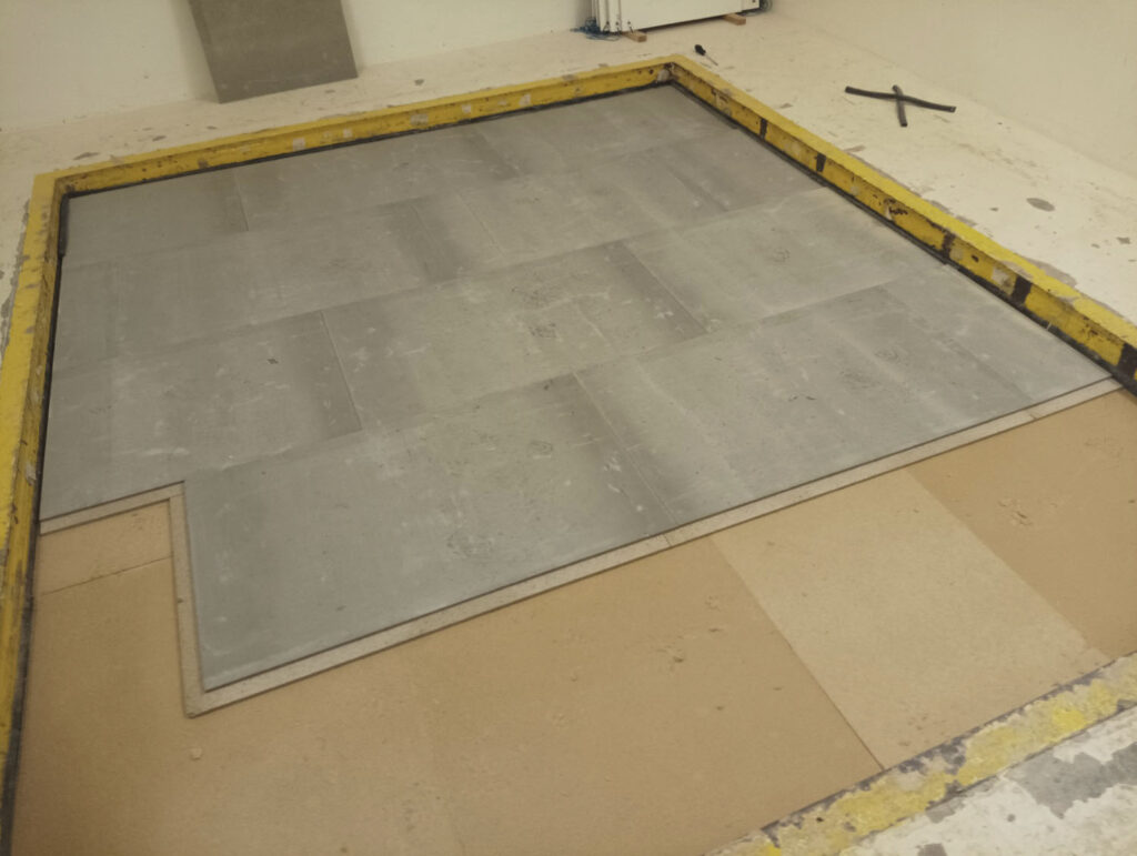 Jedním z řešení, jak dosáhnout požadovaných hodnot pro stropní konstrukce, je použití lehkých plovoucích podlah. Základ těchto skladebných systémů tvoří izolační deska, která se díky své pružnosti nejvíce podílí na hodnotách kročejové neprůzvučnosti. Na izolační desku je následně položena cementotřísková deska CETRIS® PDP tloušťky 22 mm (slepená a sešroubovaná v polodrážce), která vytváří roznášecí tzv. pochůzí vrstvu.