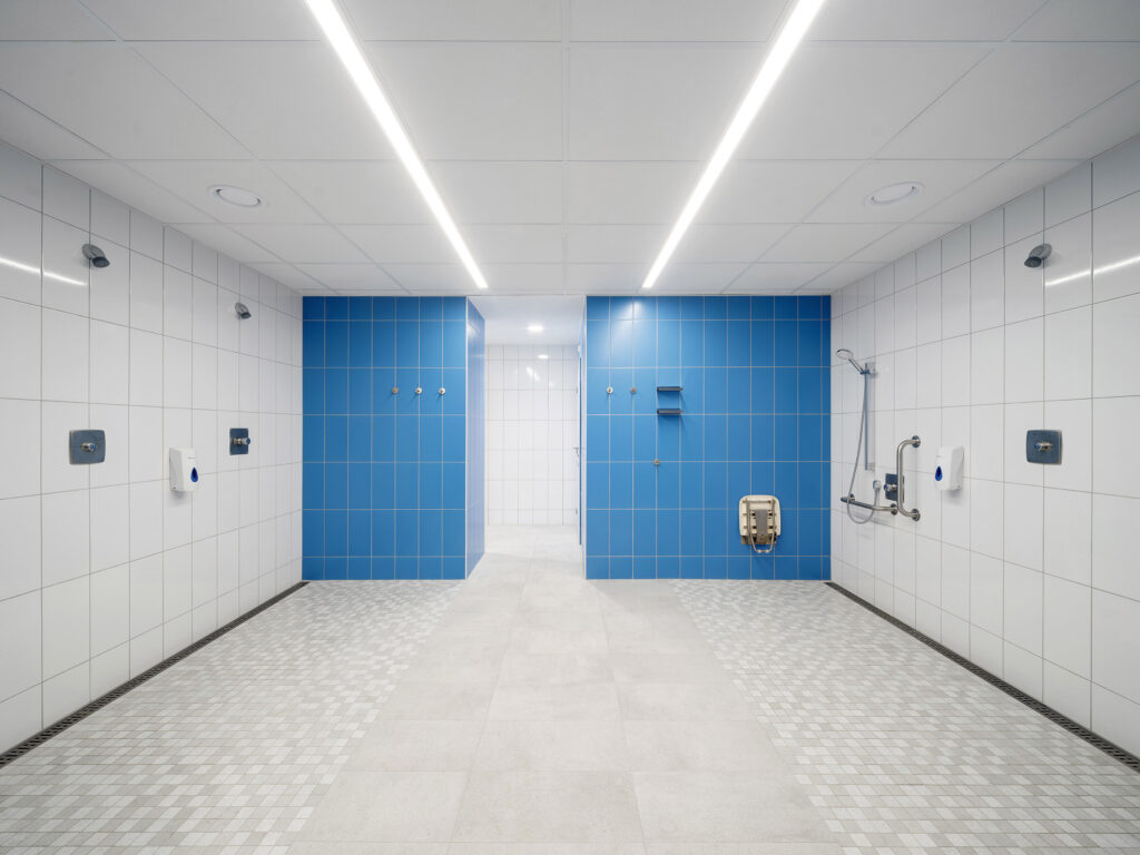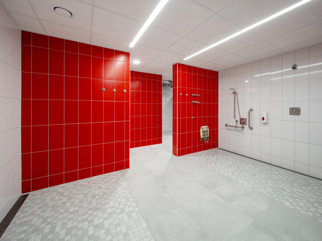 „Při výběru materiálů pro bazény je kladený důraz na kvalitu, dlouhou životnost a snadnou údržbu,“ konstatuje Richard Dvořák z projektového týmu LASSELSBERGER. „Zároveň je nutné hledat řešení – materiály, které splňují přísné normy, vyhlášky na protiskluzné povrchy jak v bazénu, tak ve sprchách nebo v šatnách. Výrobky RAKO jsou v souladu s novými požadavky Vyhlášky 146/2024 pro hygienické prostory, konkrétně na protiskluznost R10 pro WC a sprchy. Keramické obklady RAKO nabízí pro bazény širokou škálu protiskluzných povrchů – pro chůzi v obuvi v rozsahu R9–R12 a pro chůzi bosou nohou v rozpětí A/B/C. Součástí dodávky obkladů pro svitavský bazén byly jak klasické formáty, tak i speciální tvarovky, které zajišťují maximální bezpečnost a komfort uživatelů.“