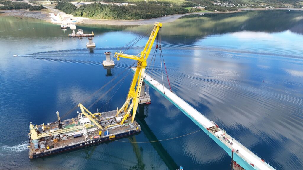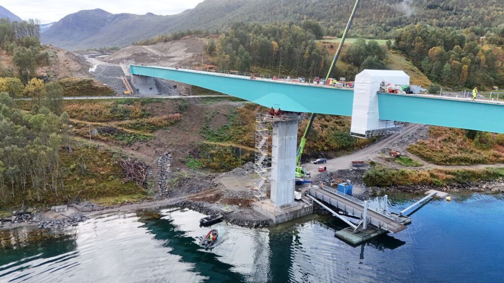 „Dle lokálních zdrojů šlo o největší zdvih uskutečněný v Norsku pomocí lodního jeřábu. O to víc si cením toho, že se nám daří tuto kritickou operaci zvládnout v souladu s harmonogramem. Nyní provádíme tzv. finální podlití ložisek a zahajujeme svářečské práce. Ocelová konstrukce mostu by tak měla být hotová na přelomu roku a následně můžeme navázat betonážemi,“ vysvětlil Matěj Novotný, vedoucí projektu z Metrostavu Norge.